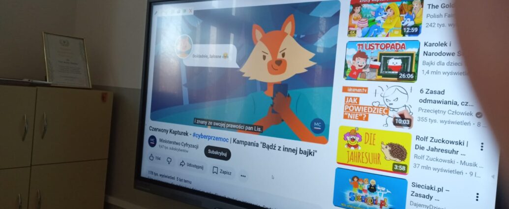 W tym roku szkolnym nasza szkoła przystąpiła do akcji. Tym samym klasa 6 a wzięła dzisiaj udział w lekcji ” Nie wywołuje hejtu z lasu- Czerwony Kapturek i cyberprzemoc”.
