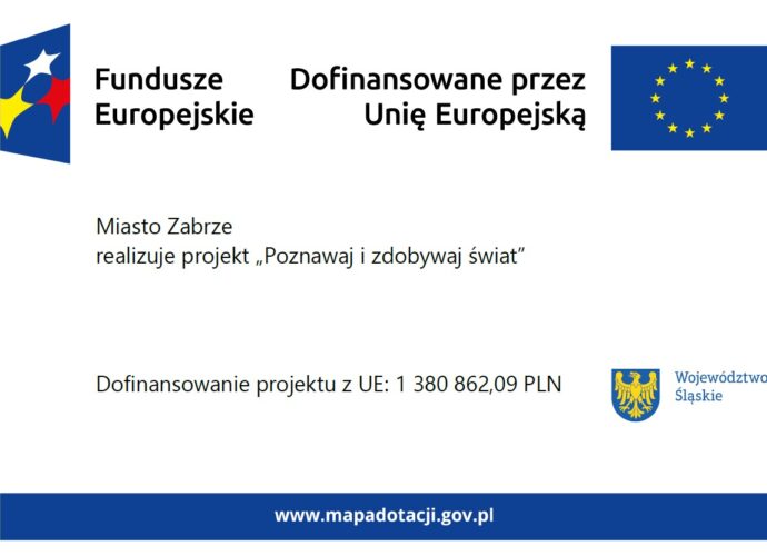 Z dniem 15 września 2025 roku Miasto Zabrze rozpoczęło realizację projektu: „Poznawaj i zdobywaj świat” w ramach Programu Fundusze Europejskie dla Śląskiego 2021-2027 współfinansowanego ze środków Europejskiego Funduszu Społecznego+, Priorytet FESL.06.00-Fundusze Europejskie dla edukacji, działanie FESL.06.02- Kształcenie ogólne. Wsparciem objętych zostanie: 600 uczniów/ uczennic szkół podstawowych; 60 nauczycieli szkół podstawowych; 12 szkółRead More →